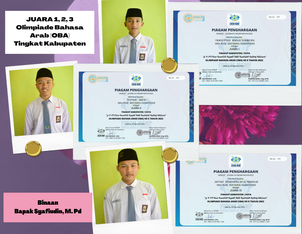 Alhamdulillah, di pagi yang cerah ini semakin membuat warga SMABU Mlokorejo semakin cerah ceria. Pasalnya ada sebuah kabar gembira dari pembina Olimpiade Bahasa Arab (OBA): Bapak Syafiudin, M. Pd bahwasanya tiga peserta didik memborong Penghargaan OBA Ke-5 Tahun 2022.