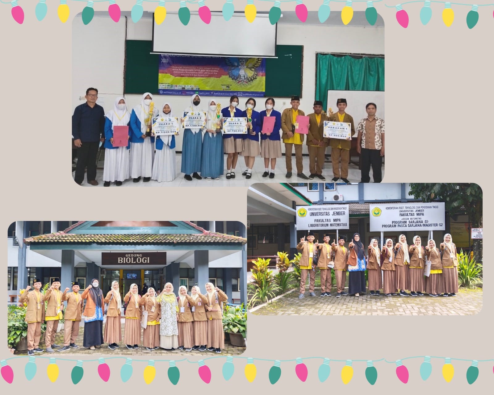 Alhamdulillah, tiga kelompok KIR SMABU Mlokorejo lolos dalam babak final lomba Karya Tulis Ilmiah Tingkat Nasional yang diselenggarakan oleh Fakultas MIPA Biologi Universitas Jember dalam ajang Biological Sciences XIII. Untuk dapat lolos menjadi 10 besar ini, tentu saja tidaklah mudah. Perlu ide-ide penelitian yang inovatif dan kreatif.