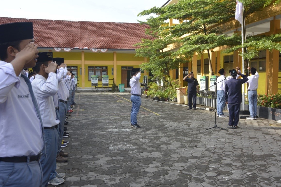 Untuk menyambut semester genap tahun pelajaran 2021/2022, Pengurus OSIS menyelenggarakan upacara hari Senin dengan penuh khidmah. Dalam sambutannya, Bapak Drs. Mistahal sebagai pembina upacara putra dan Ibu Dra. Endang Endarwati sebagai pembina upacara putri berpesan agar seluruh warga sekolah lebih giat dalam belajar.