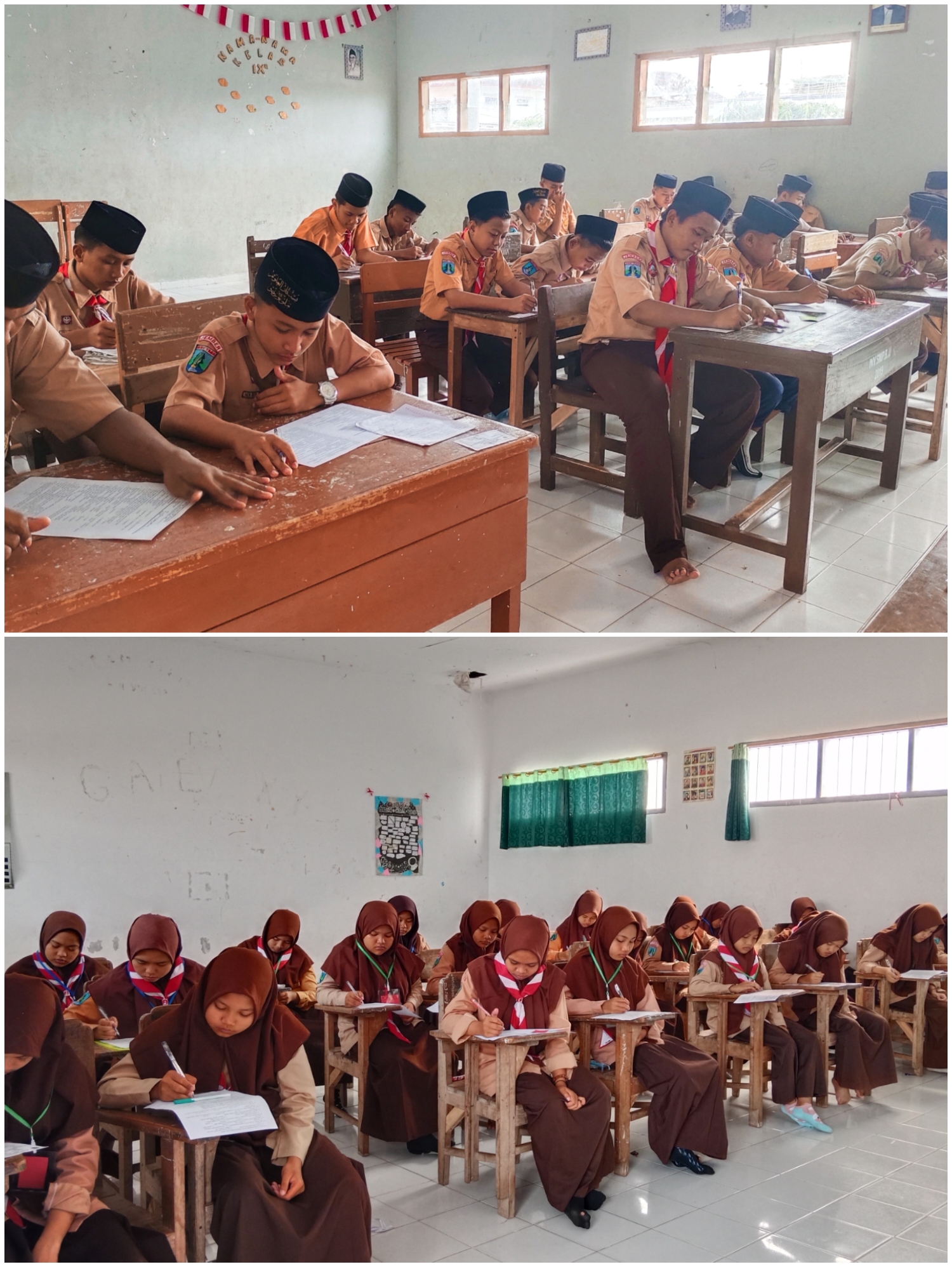 "Alhamdulillah, ujian hari pertama lancar. Semoga untuk ke depannya pun demikian. Setelah ujian nanti akan ada kegiatan remidi dan susulan bagi yang tidak masuk karena sakit, izin, atau mungkin ada yang alfa, demikian pula bagi mereka yang nilainya kurang memenuhi standar. Kemudian akan diadakan classmeeting, sebagai fungsi rekreasi bagi siswa, sehingga untuk sejenak mereka bisa relaks dan menghibur diri sambil menunggu penerimaan rapor." Tutur Ibu Riwayati.